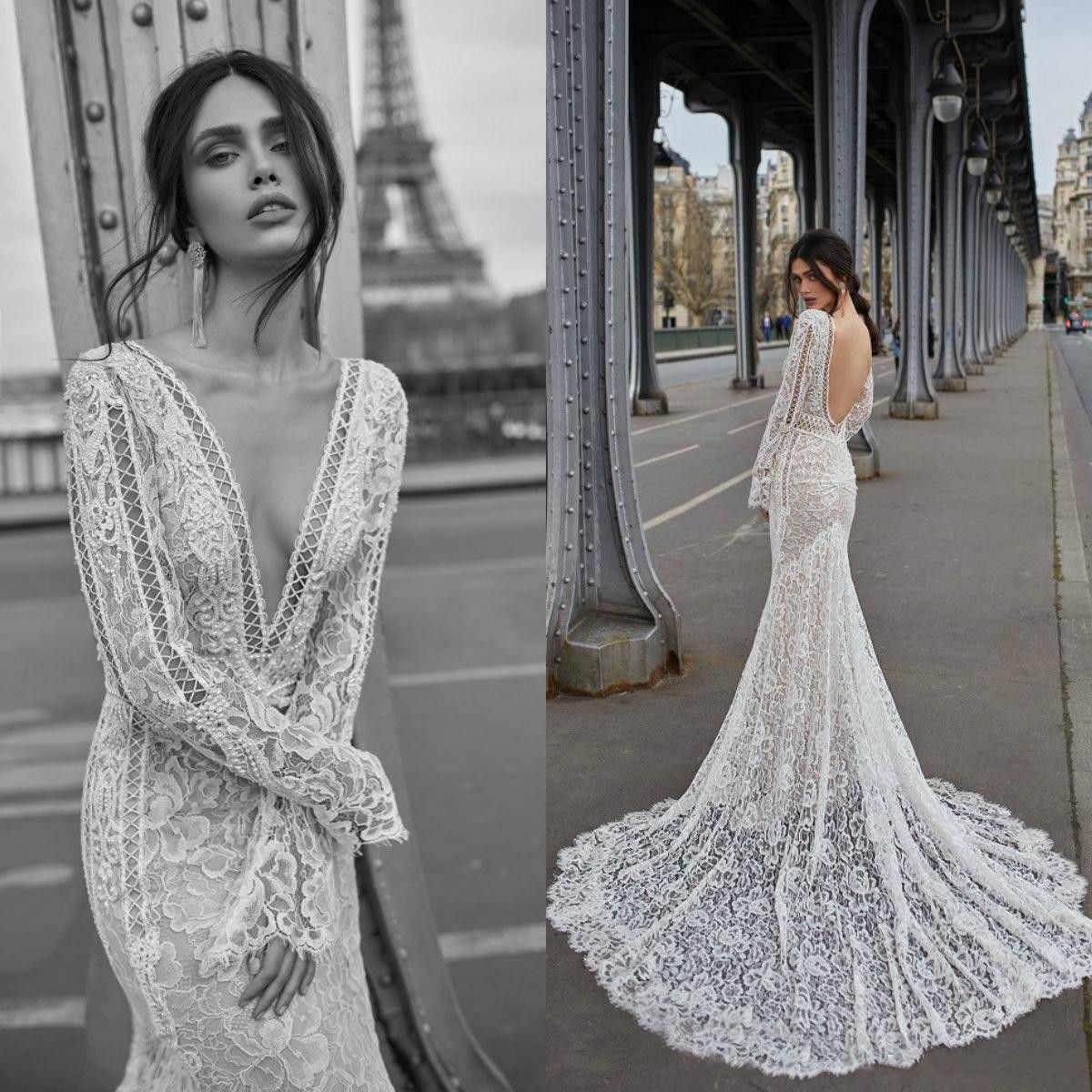 Sexy Mermaid Lace Backless Wedding Dresses 2019 Deep V Neck